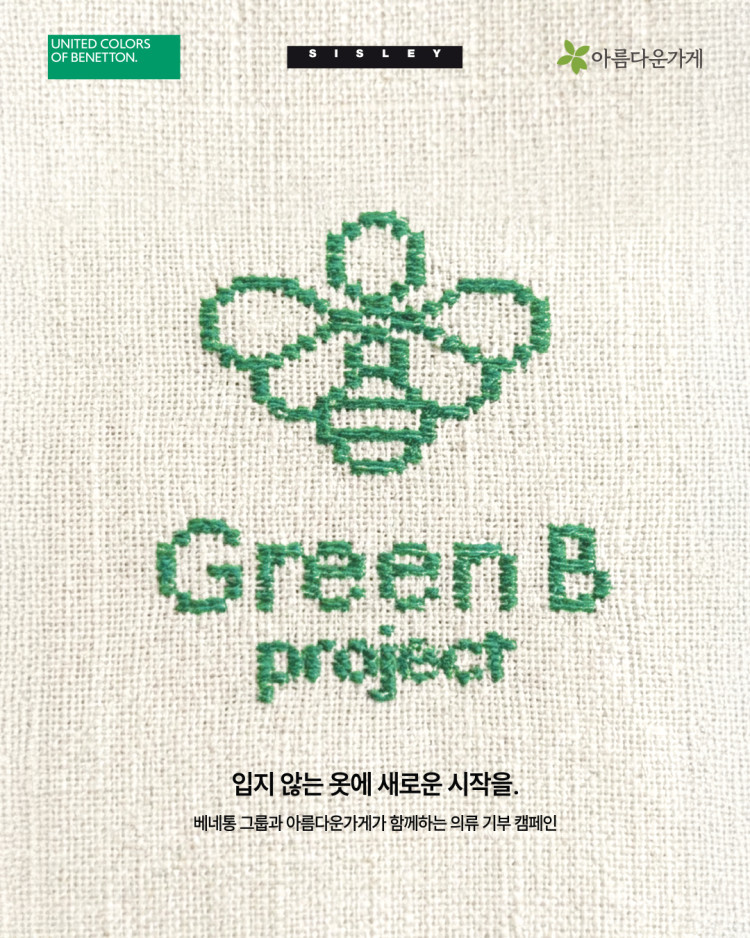 이번 프로젝트는 더 이상 입지 않지만 브랜드 메인 라벨이 부착된 베네통, 시슬리, 베네통키즈 의류 제품을 전국 백화점 매장으로 가져오면 10% 즉시 사용 가능한 할인 쿠폰을 증정하는 내용이다. 특히 이번 ‘그린 비(GREEN B) 프로젝트’는 그룹사 통합 운영으로, 기부한 브랜드와 관계없이 세 브랜드 매장 어디서나 혜택을 받을 수 있어 브랜드 간 교차 참여가 가능하다.