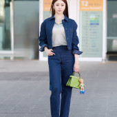 이날 허윤진은 그레이 폴로 셔츠에 데님 자켓을 레이어드하고, 데님 팬츠와 펜디 아르코 슈즈를 매치해 세련된 공항 패션을 선보였다.