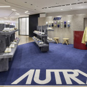 이번 신세계 강남점 팝업 스토어는 강렬한 화강암 소재의 조형적 디스플레이와 레드 컬러의 하이글로시 가구를 배치해 모던하면서도 힘 있는 분위기를 연출했다. 특히 오트리 로고를 과감하게 활용한 블루 카펫과의 대비는 브랜드 고유의 오리지널 컬러를 상징하며, 아이코닉한 스니커즈 라인과 디자인 철학을 시각적으로 구현했다.