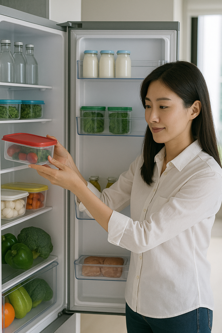 탭 라벨을 붙여 오늘 먹을 것, 3일 내 먹을 것, 다음 주로 나누면 버리는 음식이 줄어든다. 반찬통은 같은 규격으로 통일해 쌓는 높이를 낮추고, 내용물은 반투명 용기로 한눈에 보이게 한다.