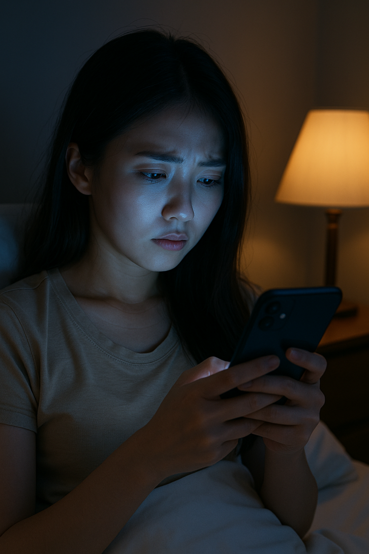 우리 몸의 시계 유전자는 망막 ganglion 세포가 감지한 푸른계열 빛을 통해 낮과 밤을 구분하는데, 취침 직전까지 강한 블루라이트에 노출되면 뇌는 여전히 낮이라고 판단해 멜라토닌 분비를 억제한다. 멜라토닌은 졸음을 유도하고 체온을 떨어뜨려 잠을 준비하게 하는 호르몬이다. 분비가 늦어지면 잠들기까지 걸리는 시간은 늘고, 밤사이 각성 빈도도 증가해 깊은 수면 단계가 줄어든다.