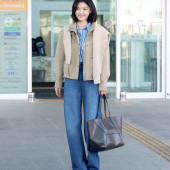 이날 허윤진은 그레이 폴로 셔츠에 데님 자켓을 레이어드하고, 데님 팬츠와 펜디 아르코 슈즈를 매치해 세련된 공항 패션을 선보였다.