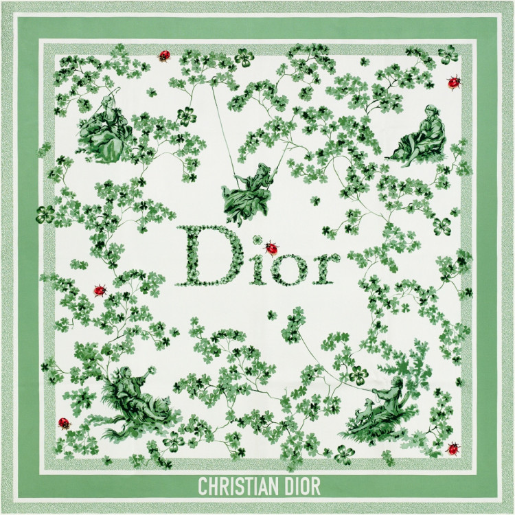 18세기 목가적인 풍경에서 영감을 받은 아이코닉한 toile de Jouy 모티브는 네잎클로버가 장식된 서정적인 버전으로 새롭게 탄생했다. 은은하면서도 우아한 스케치는 Lady Dior와 Dior Book Tote 백을 비롯해 디올 로고가 더해진 실크 스카프와 미차(Mitzah)에 적용되어 컬렉션 전반에 걸쳐 존재감을 드러낸다.