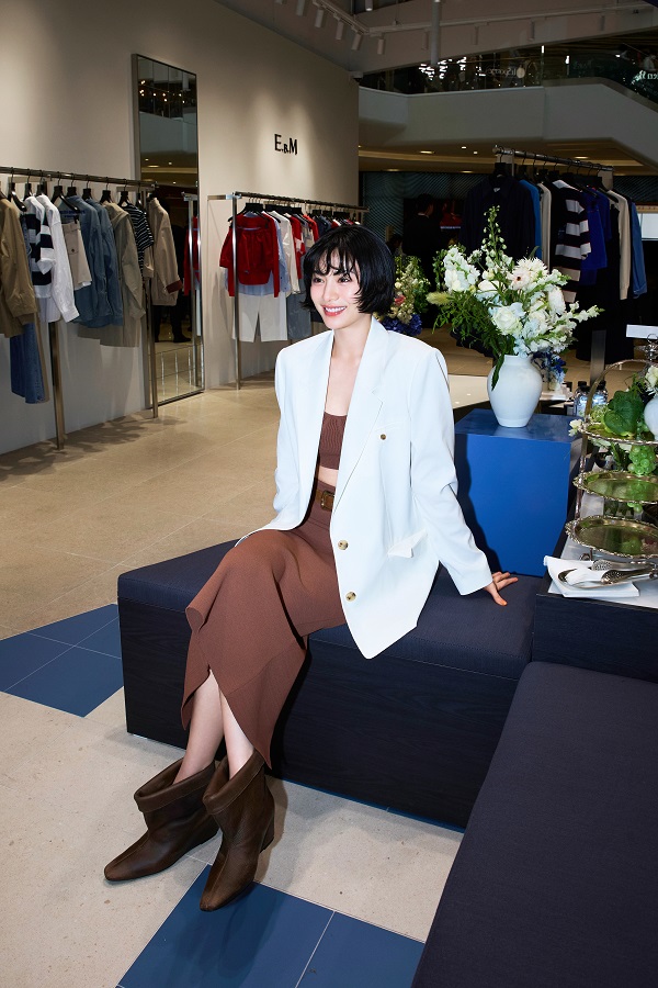 이날 나나는 화이트 재킷에 브라운 니트 브라톱, 니트 스커트를 매치한 스타일로 포토월에 등장했다. 절제된 실루엣에 과감한 디테일을 더한 이번 스타일링은 나나 특유의 쿨하고 대담한 무드를 강조하며, E.B.M이 제안하는 감각적인 컨템포러리 룩을 직관적으로 드러냈다.